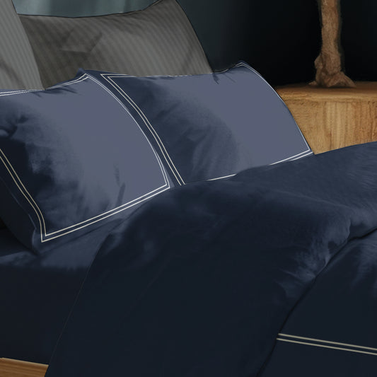 Ensemble de draps satin de coton - Annecy Bleu fonce / Blanc