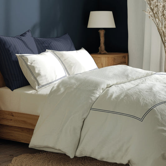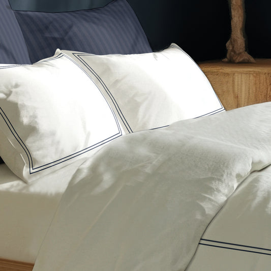 Ensemble de draps satin de coton - Annecy Blanc / Bleu fonce