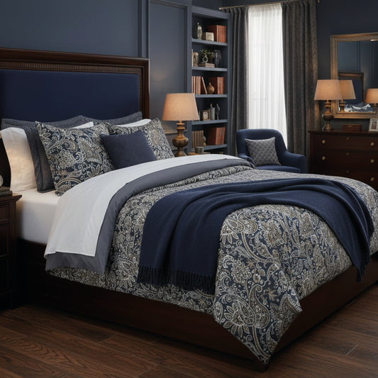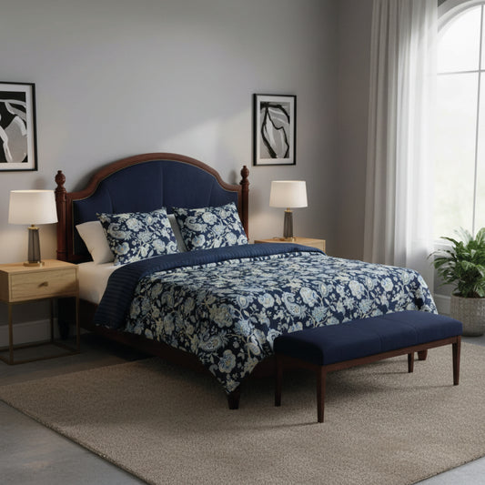 <p>Housse de couette + taie d'oreiller satin de coton - Bleu baroque Bleu fonc�</p>