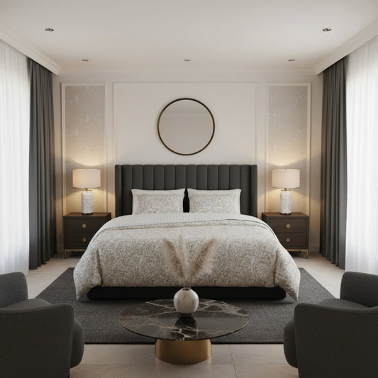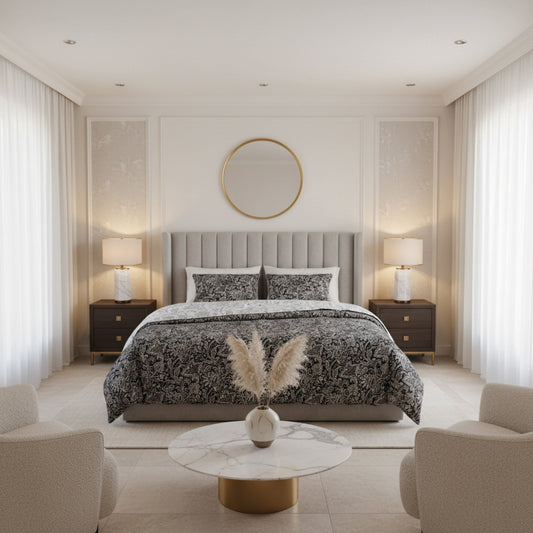 <p>Housse de couette + taie d'oreiller satin de coton - Buta Gris / Taupe</p>