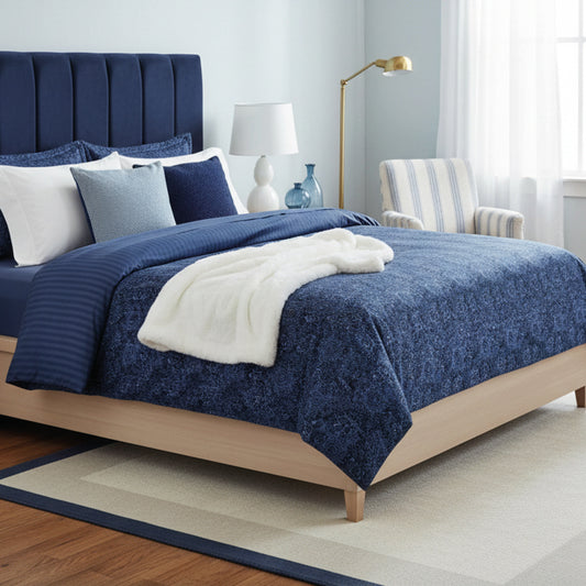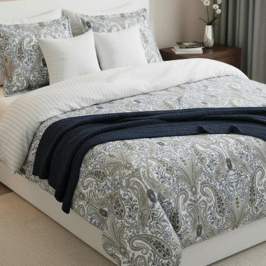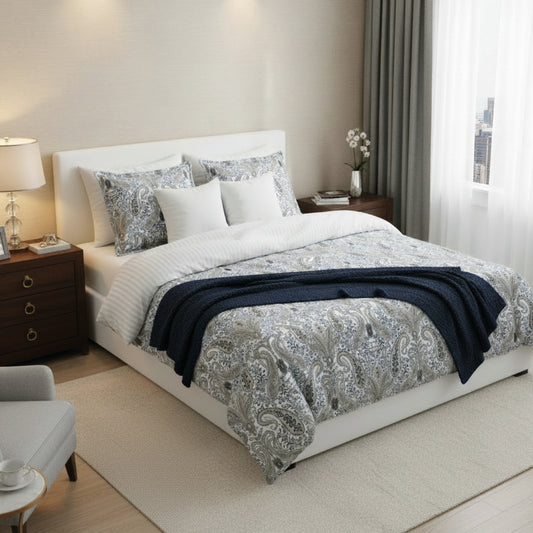 <p>Couvre-lit satin de coton - Mateo Blanc / Bleu - 220 x 250 cm</p>