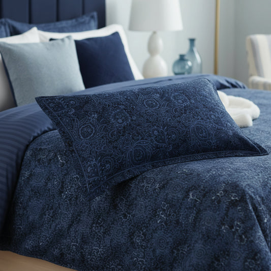 <p>Taie d'oreiller satin de coton - Eclipse fleuri Bleu</p>