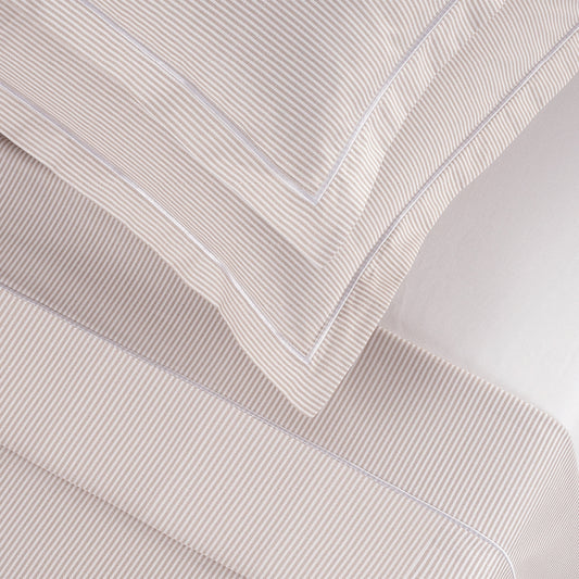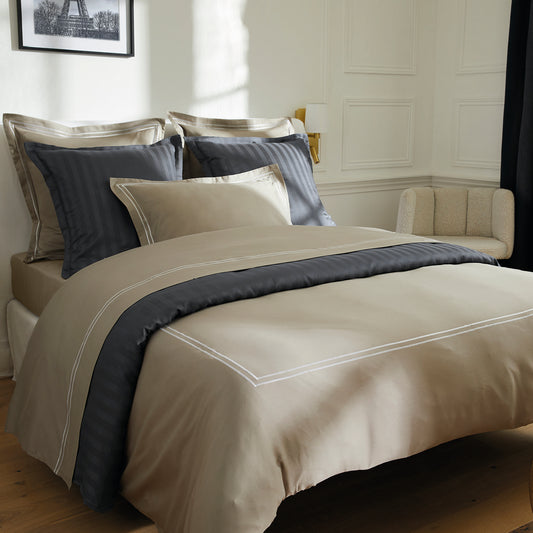 <p>Ensemble de draps satin de coton - Biarritz Blanc / Taupe</p>