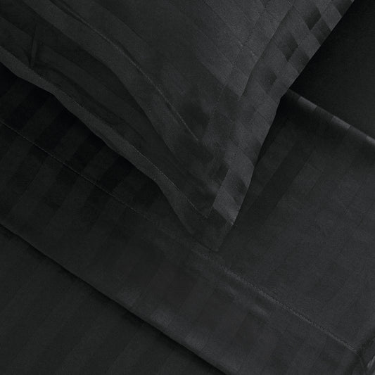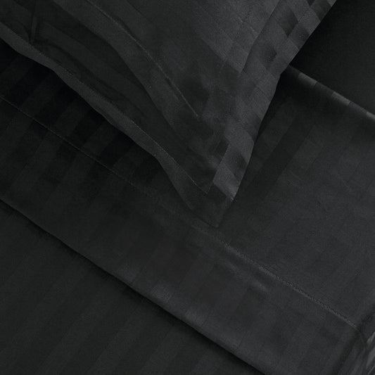 <p>Ensemble de draps satin de coton rayure tiss� dobby - Noir</p>