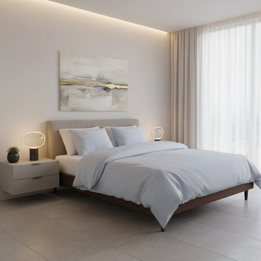 <p>Housse de couette + taie d'oreiller coton percale - Grenoble Bleu clair</p>