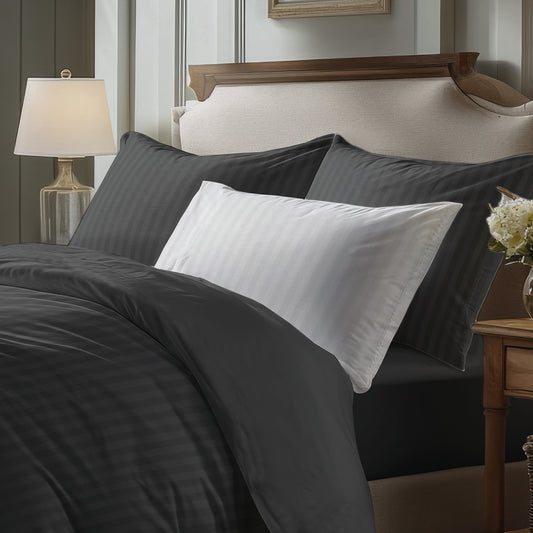Taie(s) d'oreiller satin de coton rayure tissé dobby - Noir