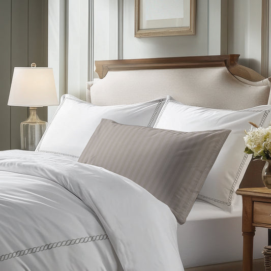 Taie d'oreiller satin de coton - Douceur royale Gris / Blanc