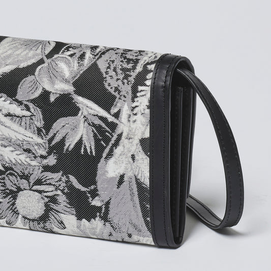 Sac bandoulière Anna en cuir et jacquard Zanzibar - Noir
