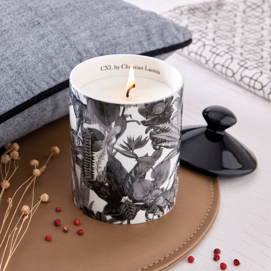 Bougie parfumée en pot de porcelaine - Zanzibar Noir - Poivre rose - durée de combustion 65h - 315 g
