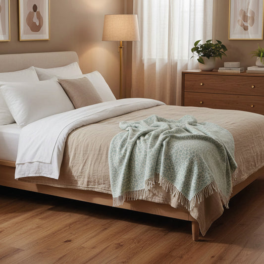 <p>Plaid tissé - Leopard Menthe - 130 x 170 cm</p>