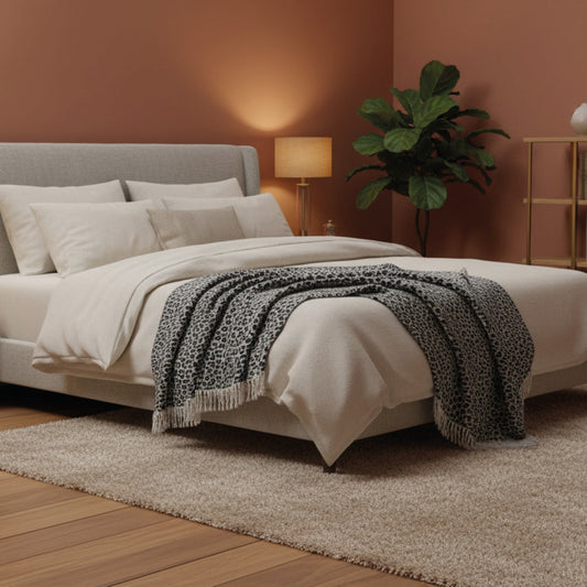 <p>Plaid tissé - Leopard Noir / Gris foncé - 130 x 170 cm</p>