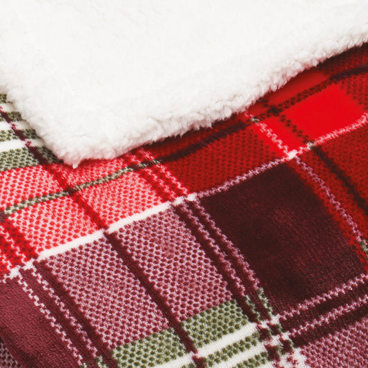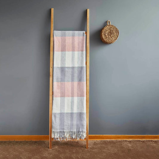 Plaid tissé en coton - 130 x 170 cm : tartan rose / gris