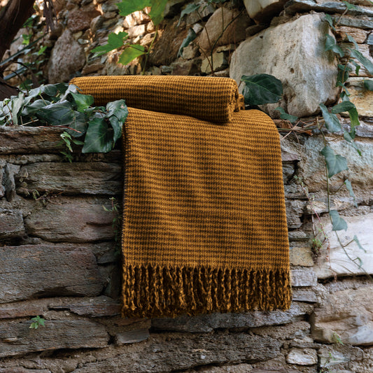 Plaid tissé - Pied de poule Ocre - 130 x 180 cm