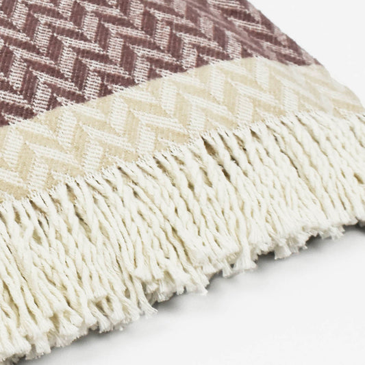 Plaid tissé en coton - 130 x 170 cm : chevron rose / mauve