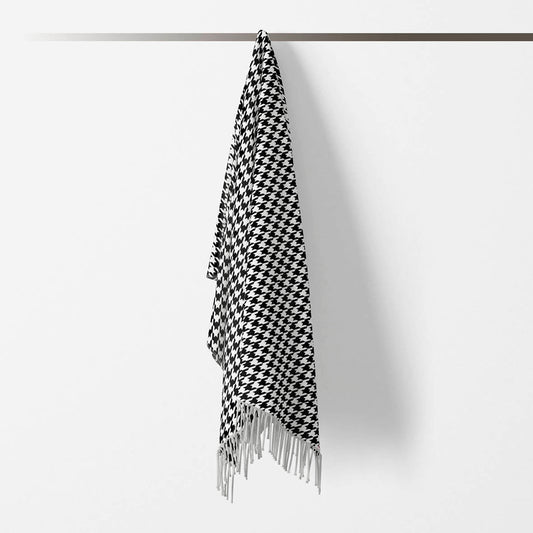 Plaid tissé en coton - 130 x 170 cm : pied de poule noir/blanc