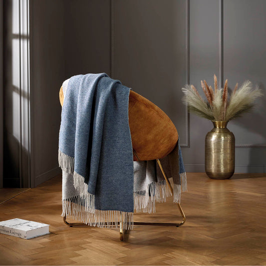 Plaid tissé en cachemire - 130 x 180 cm : bleu foncé/gris clair