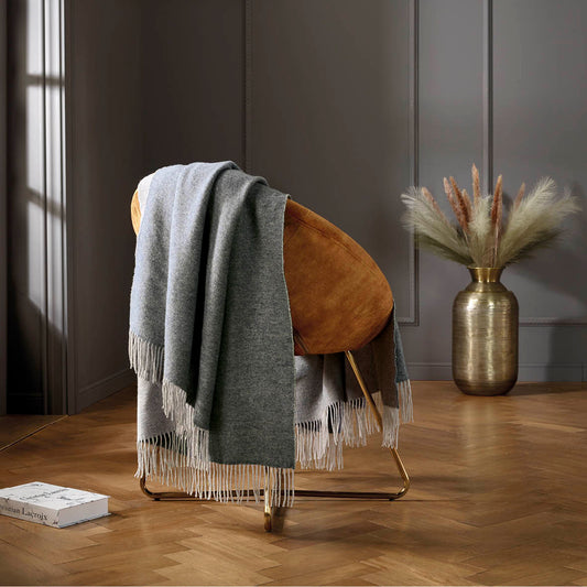 Plaid tissé en cachemire - 130 x 180 cm : gris foncé/gris clair
