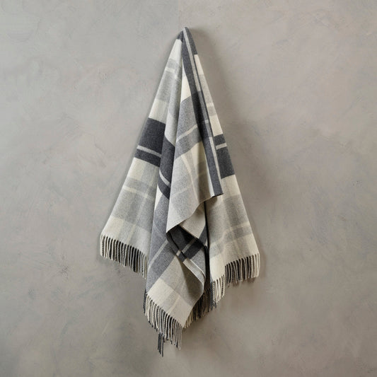 Plaid tissé tartan cachemire – 130 x 180 cm : blanc/gris