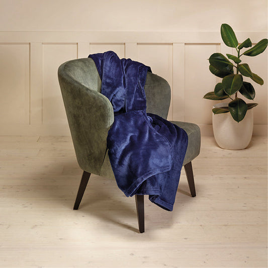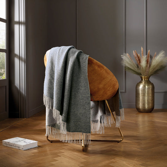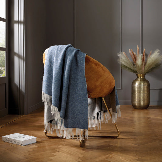 Plaid tissé en cachmire doux - Bleu foncé /gris clair