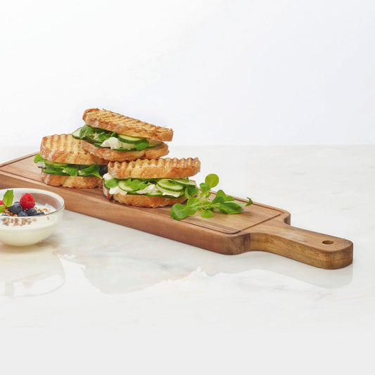 Planche à servir et à découper rectangulaire en bois d'acacia avec poignée