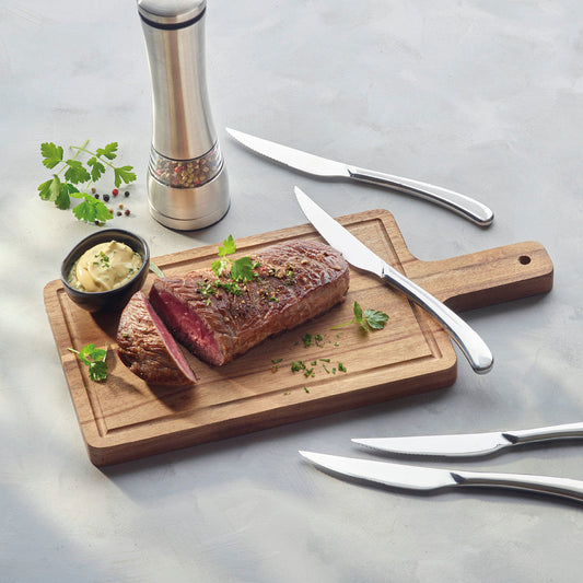 Planche à découper rectangulaire en bois d'acacia avec poignée intégrée