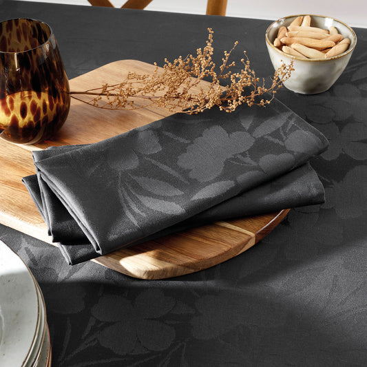 Set de 4 serviettes tissé Jacquard Fleurette - 50 x 50 cm - Gris foncé
