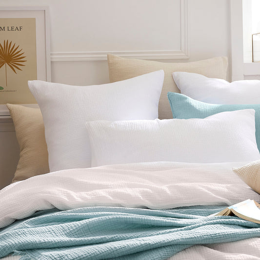 Taie(s) d'oreiller gaze de coton - Uni Blanc