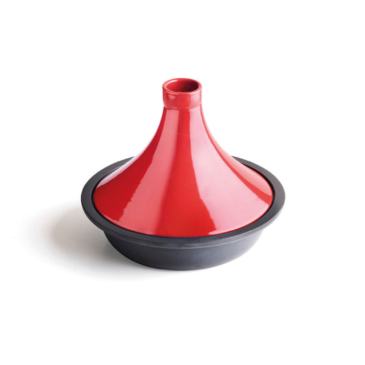 Tajine en fonte d'acier rouge avec couvercle en céramique 29,7 cm