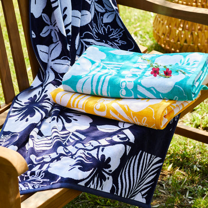 Serviette de plage Hibiscus Jaune - 90 x 180 cm