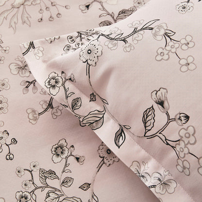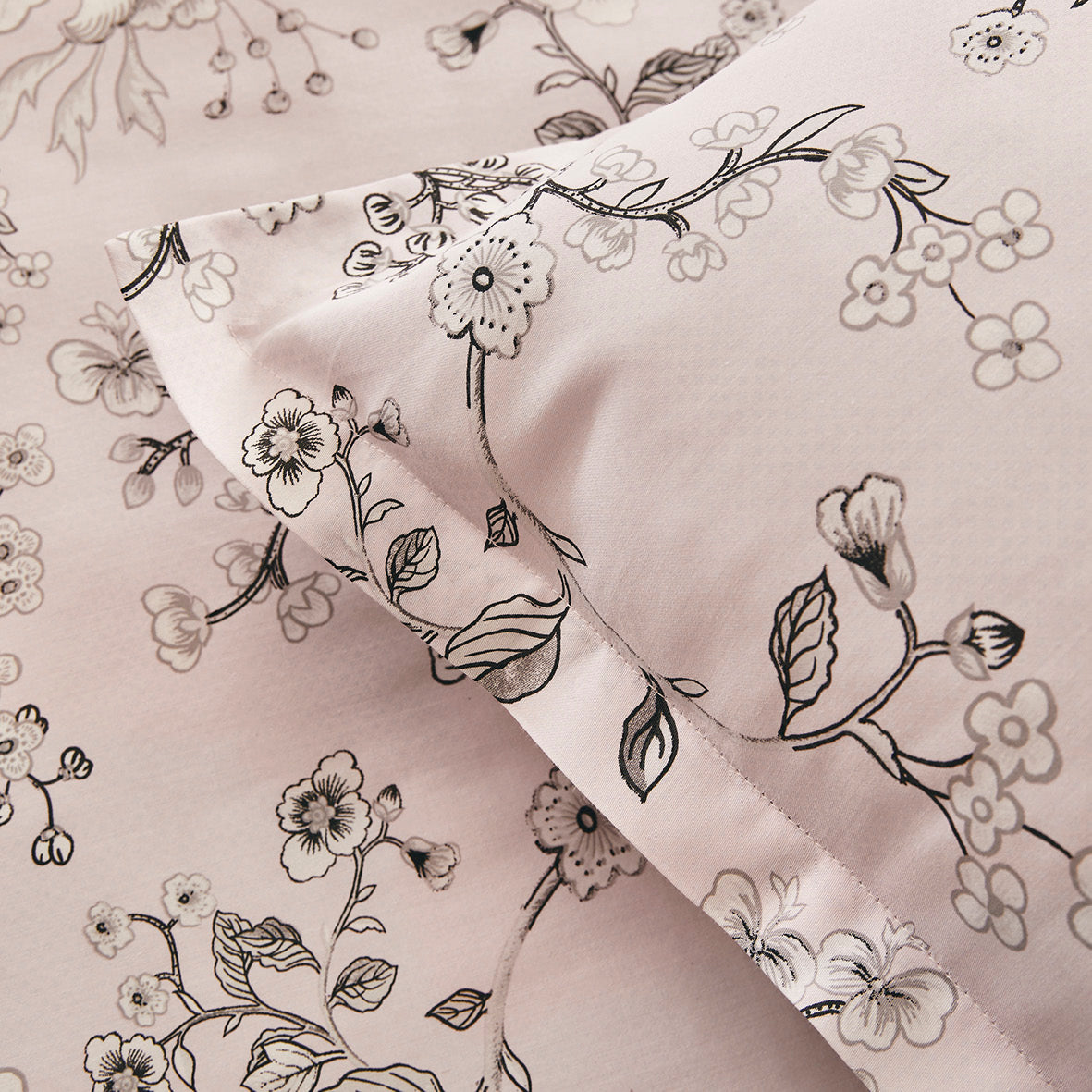 Housse de couette + taie(s) d'oreiller satin de coton - Jardin Secret Rose