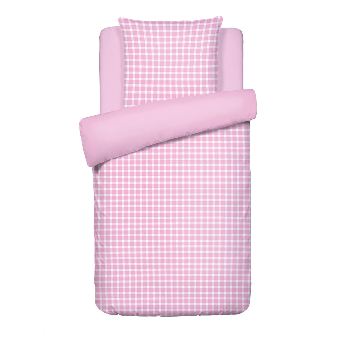 Housse de couette + taie(s) d'oreiller satin de coton - Les Carreaux d'Eléna Rose