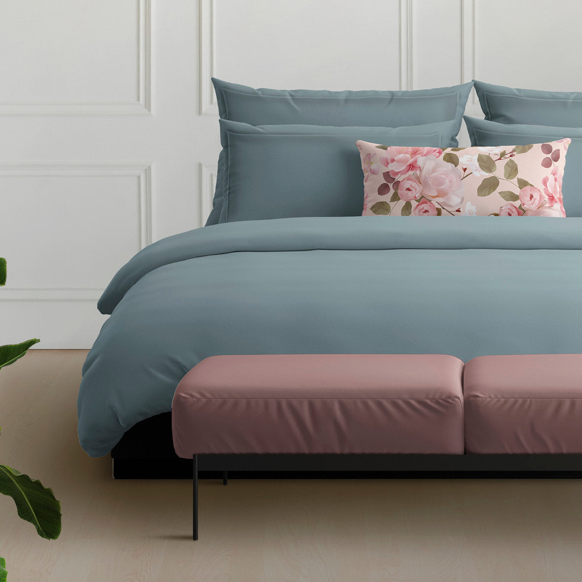 Taie d'oreiller satin de coton - Uni 1 baratta Bleu 09