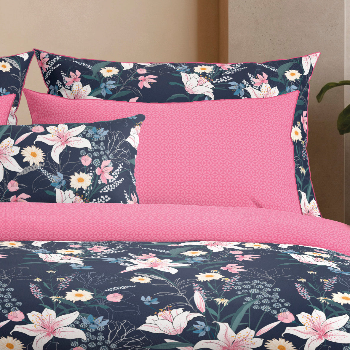 Taie(s) d'oreiller satin de coton - Fleur de minuit Bleu foncé / Rose