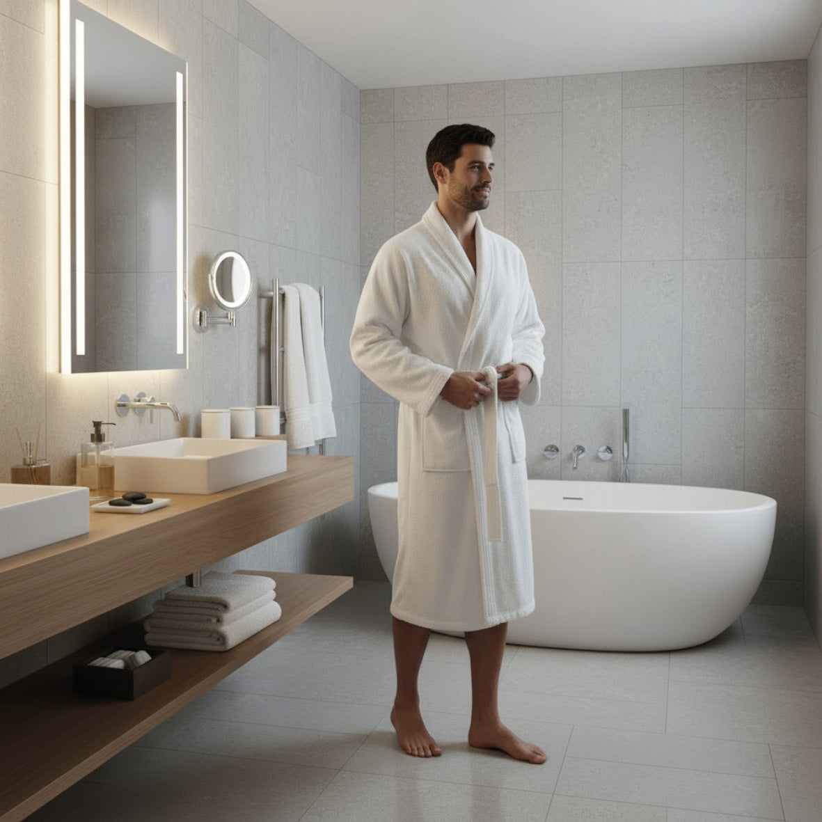 Confort chaleureux et toucher velouté : ce peignoir enveloppe le corps d'une douceur enveloppante et élégante. Il devient l'allié idéal des moments de détente, comme une parenthèse de spa à la maison.