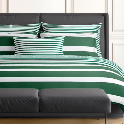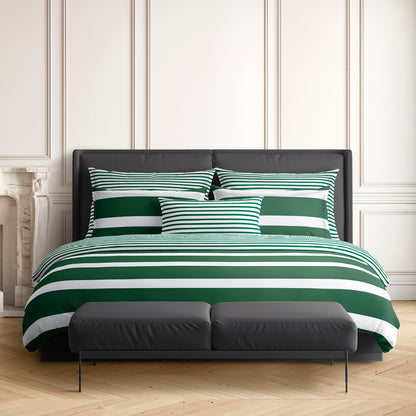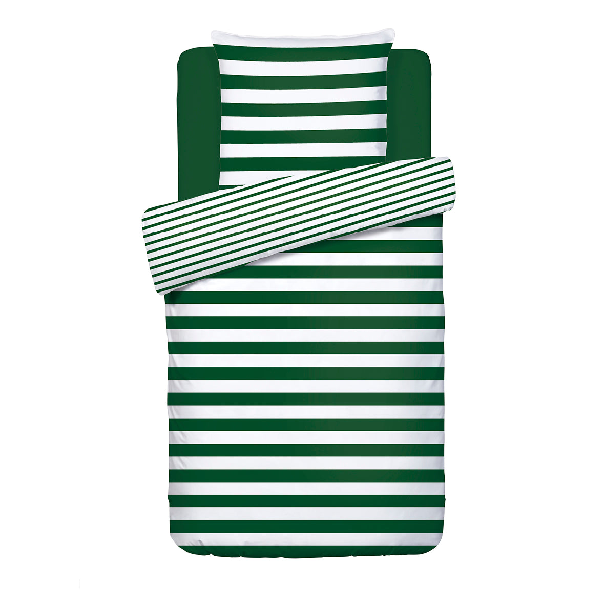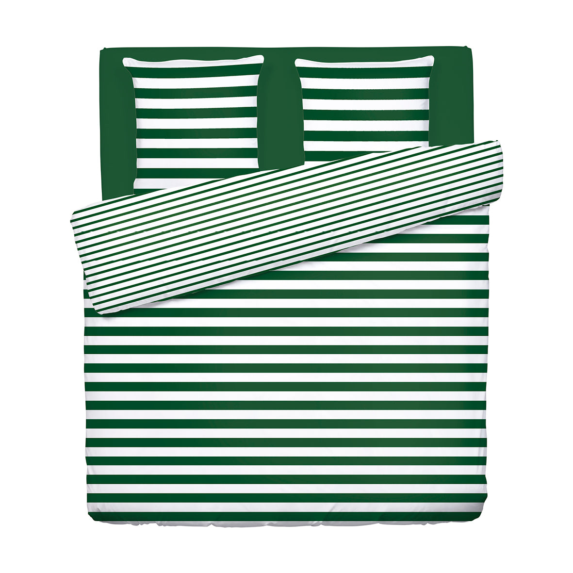 Housse de couette + taie(s) satin de coton - Marinière Vert