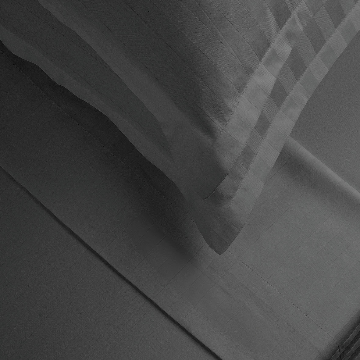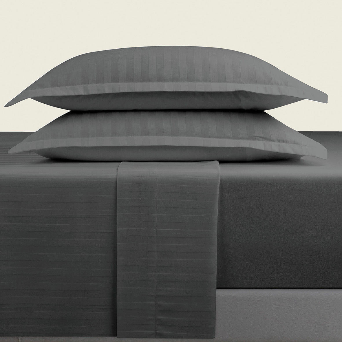 Ensemble de draps satin de coton rayure tissé dobby - Gris foncé