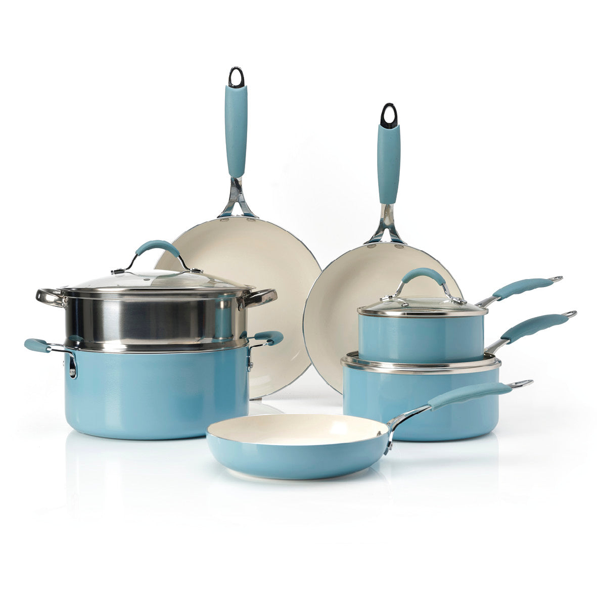 Set of 10 cookware pieces with lids – aluminum blue - Ø 16/20/24/26/28 cm