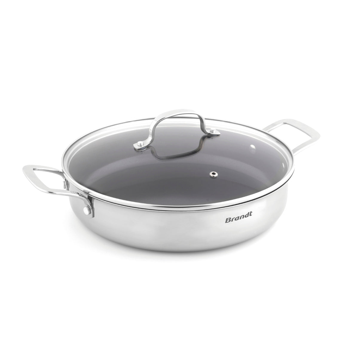 Non-stick triply skillet in stainless steel with lid - Multinox - 28 cm