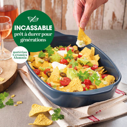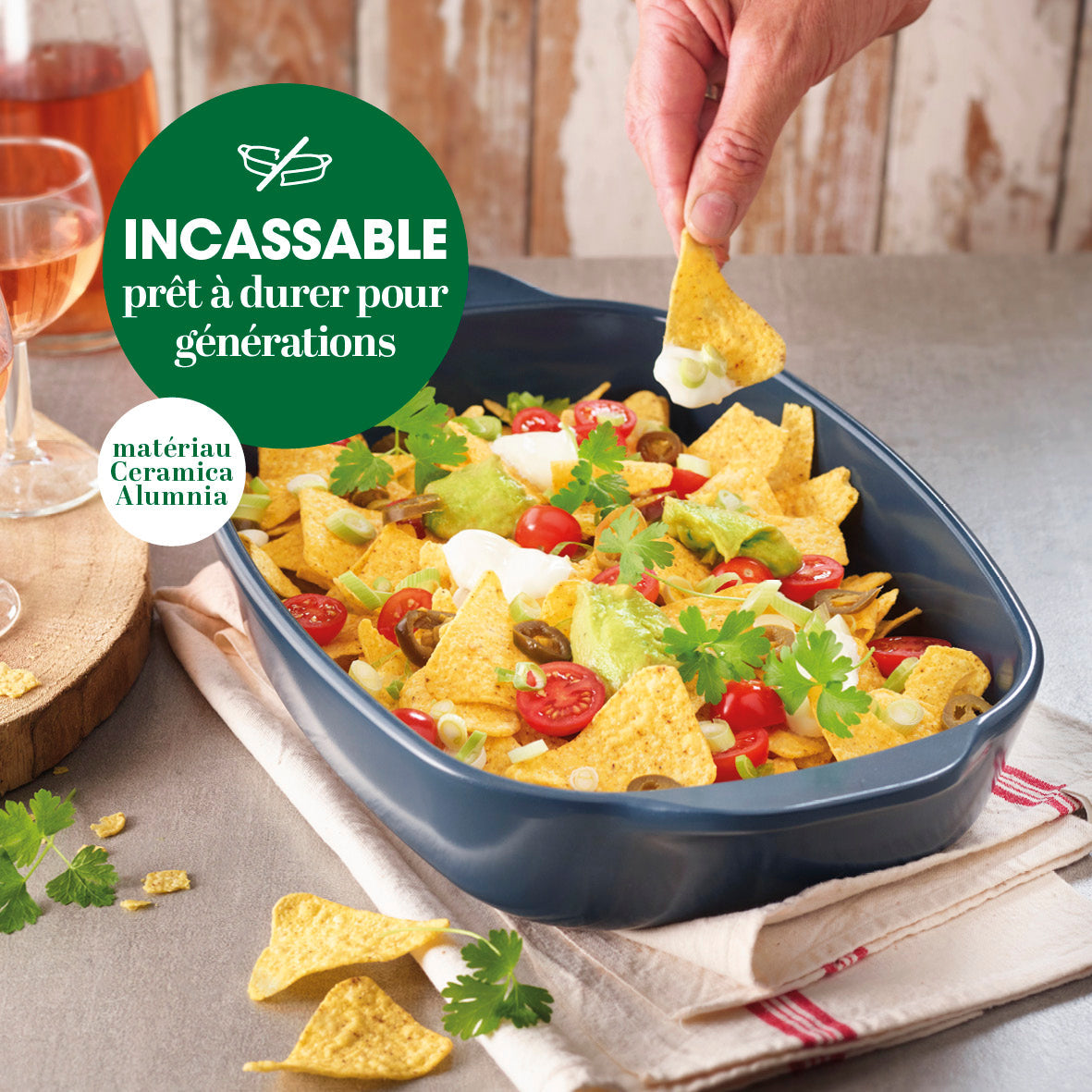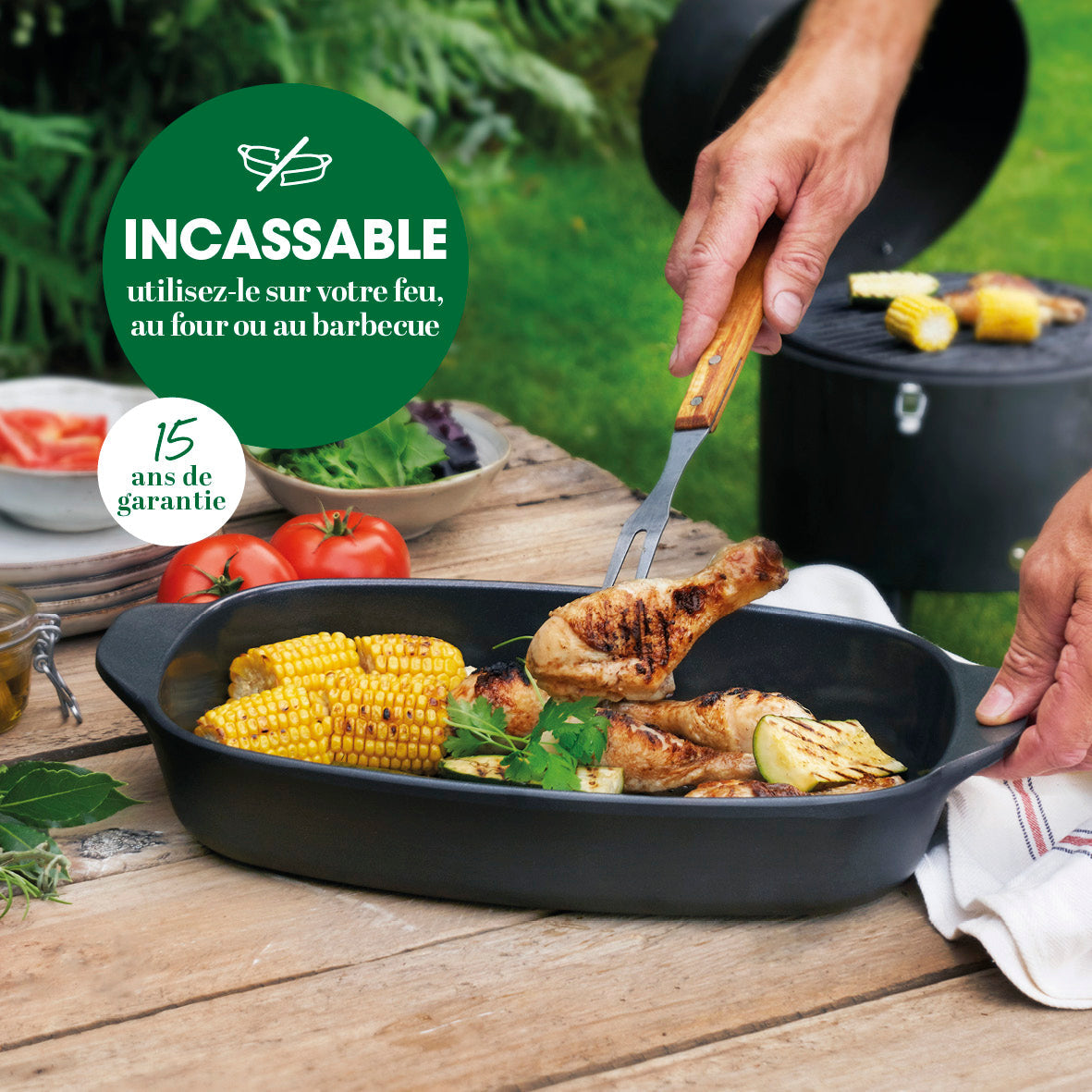 - Thanks to the unbreakable material, the baking dish can resist to shocks and is resistant from generation to generation