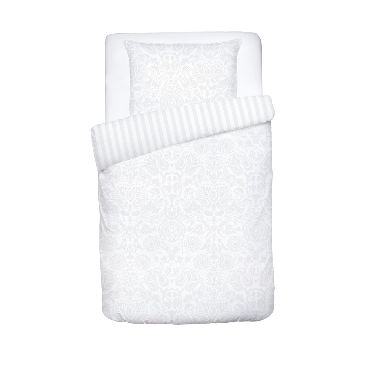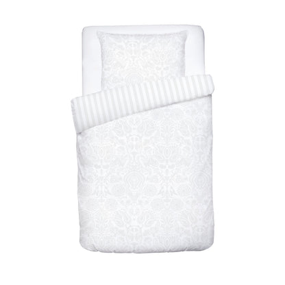 Duvet cover baby + pillowcase cotton satin Jacquard woven - Love Stories White