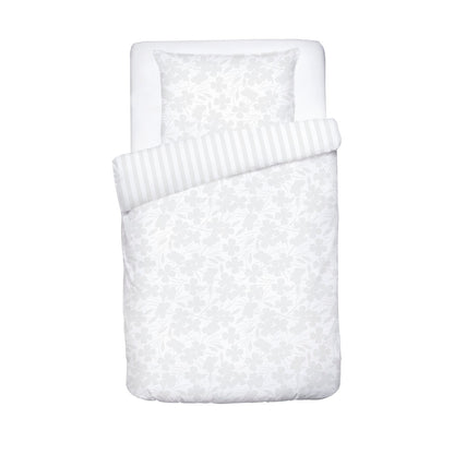 Duvet cover + pillowcase baby in cotton satin - Jacquard woven - Petites Fleurs white
