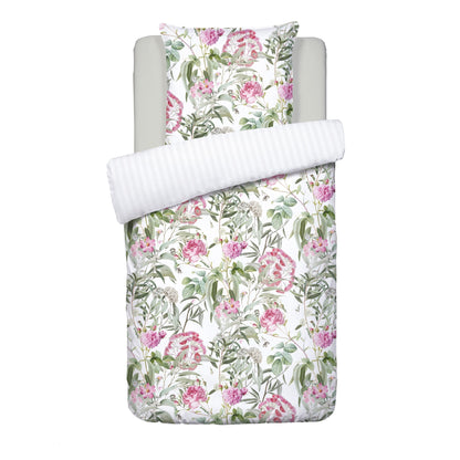 Duvet cover + pillowcase(s) cotton satin - dobby stripe Jardin de Roses White