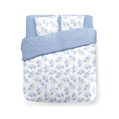 Duvet cover + pillowcase(s) linen - Roses Light blue