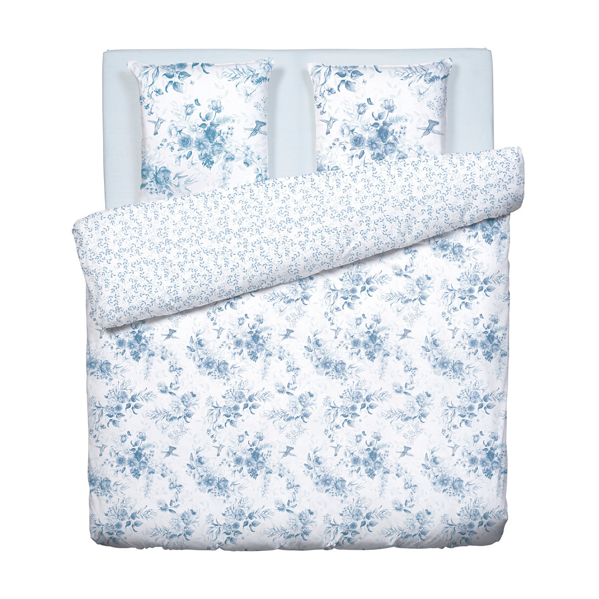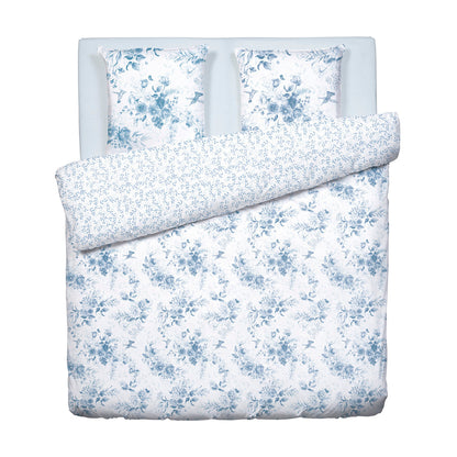 Duvet cover + pillowcase(s) cotton satin - Bleu Floral white