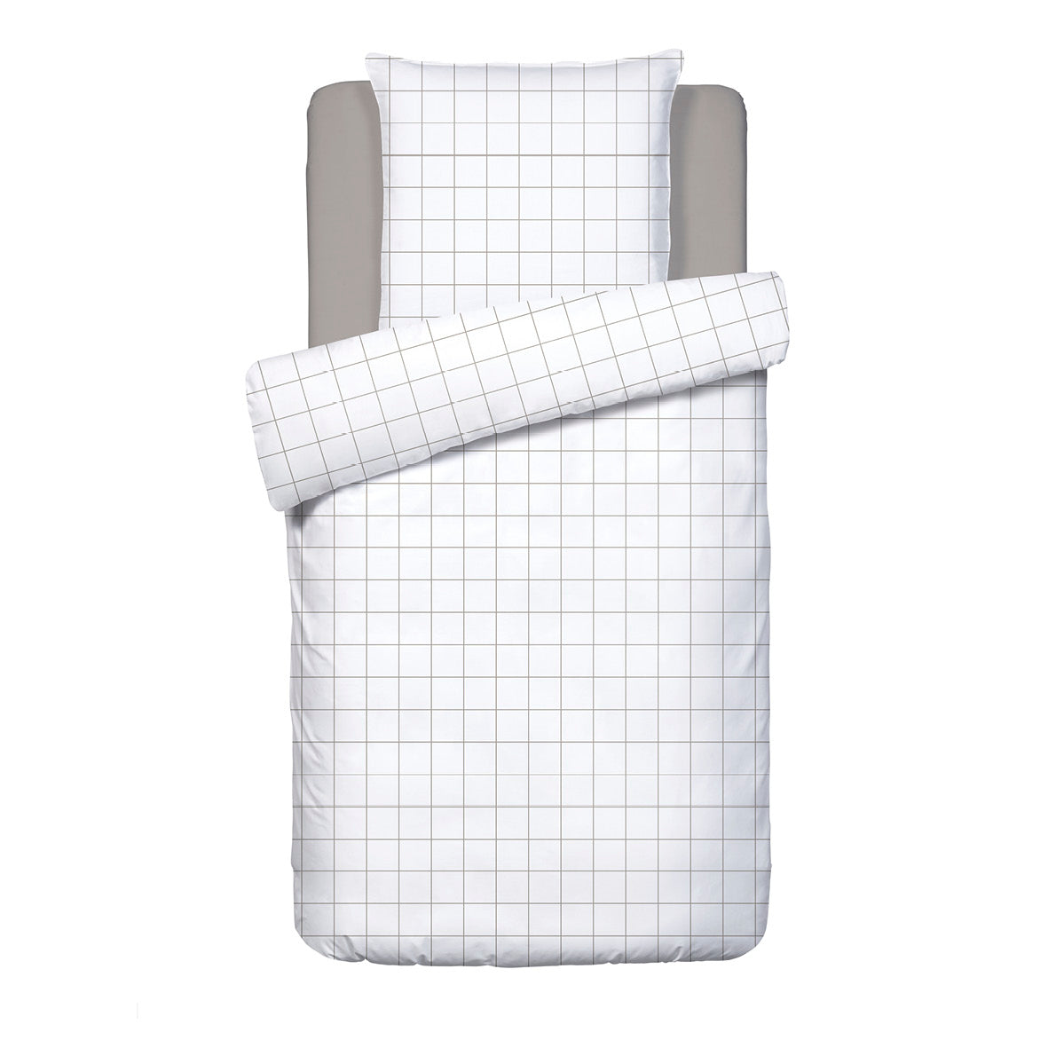 Duvet cover + pillowcase(s) cotton satin - Noa White / Taupe