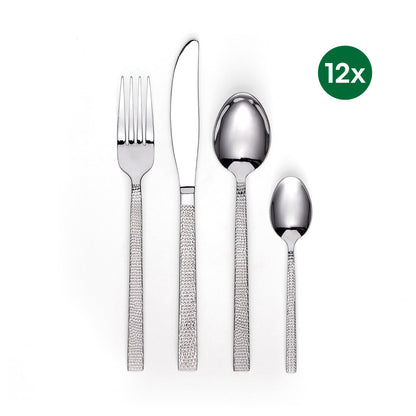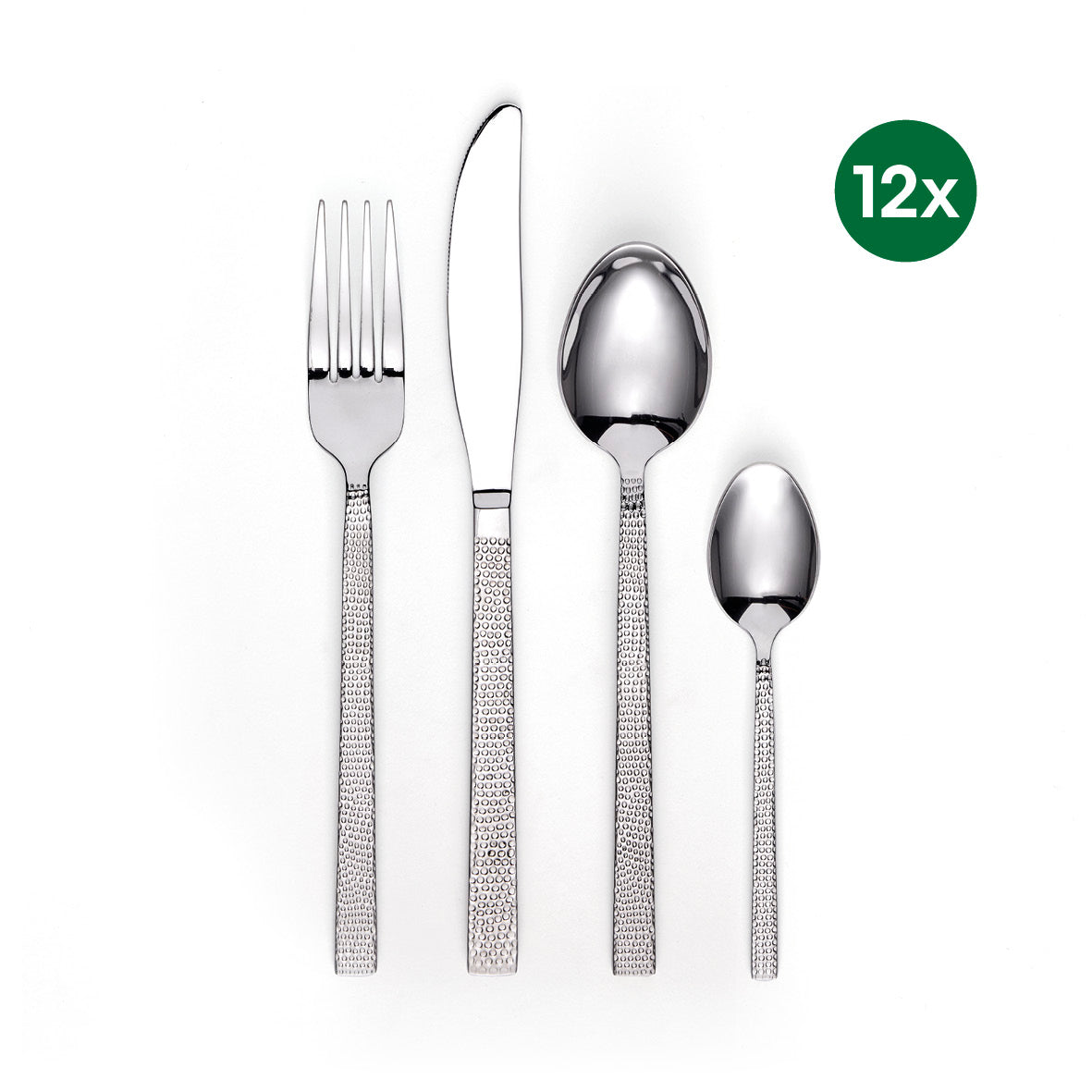 - Versatile, hammered look for daily use: a contemporary, modern, high-quality stainless steel cutlery set for up to 12 people