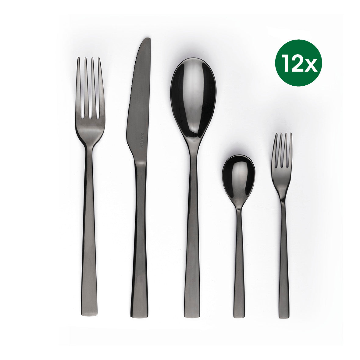 60 pieces for 12 people: set of 48 pieces of cutlery for 12 people, consisting of 12 table knives / 12 table forks / 12 soup spoons / 12 coffee spoons / 12 dessert forks