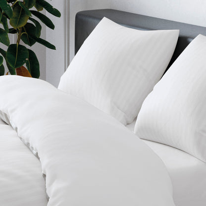 Duvet cover + pillowcase cotton satin dobby stripe woven White