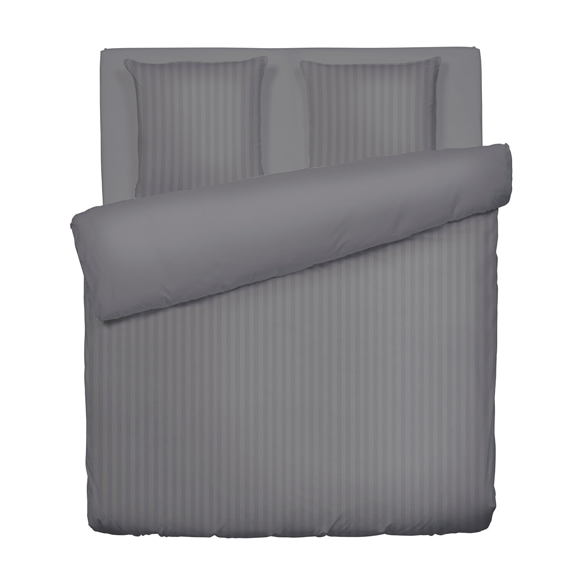 Duvet cover + pillowcase(s) cotton satin dobby stripe woven - Dark grey