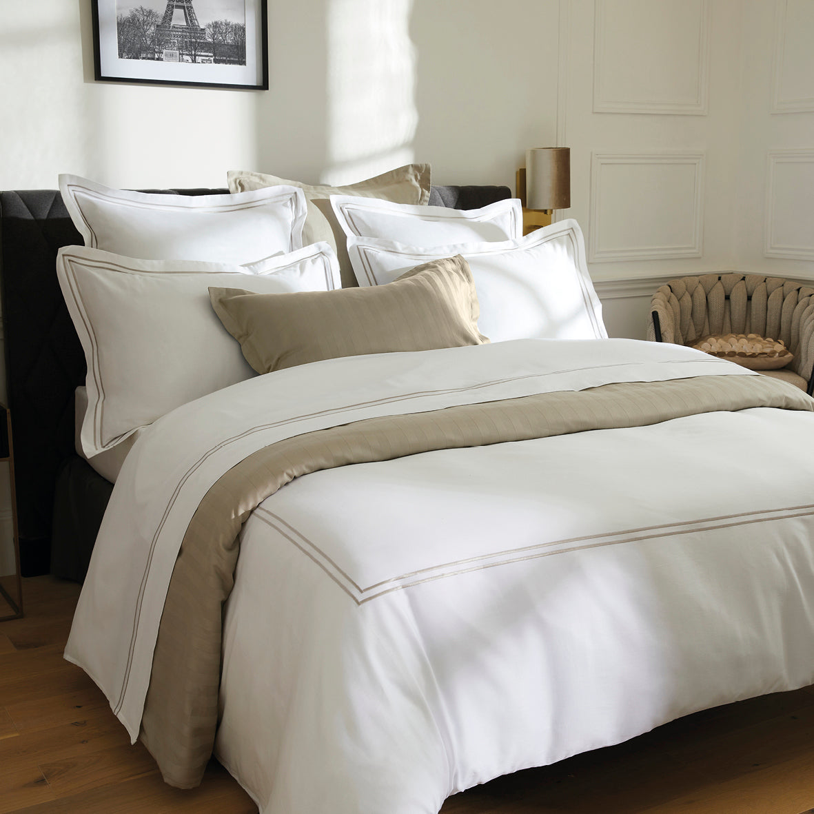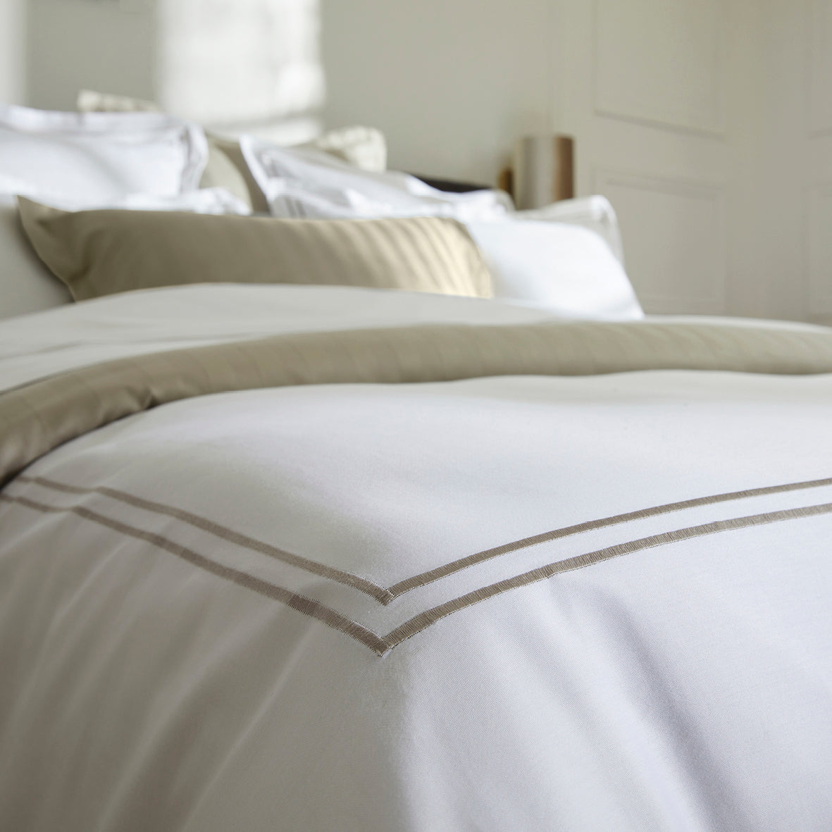 Duvet cover + pillowcase(s) cotton satin - Nice Taupe / White